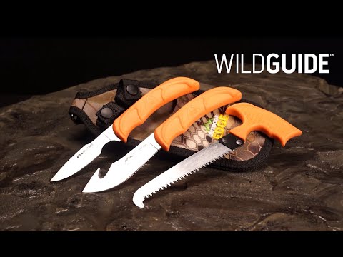 The perfect hunting combo to break down big game with a caping knife, gut-hook skinner, and T-handle wood/bone saw complete with a Kryptek® nylon belt sheath.